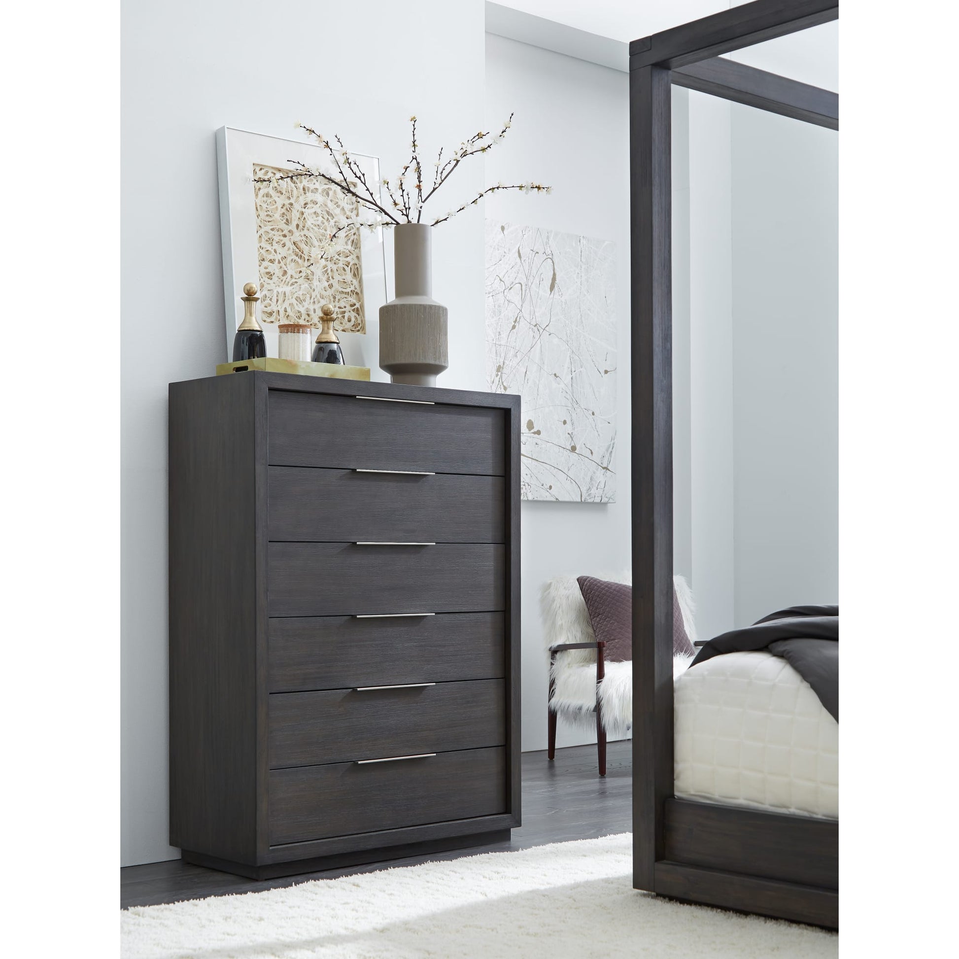 La collezione Oxford, dal design elegante e raffinato, colpisce per le sue proporzioni audaci, le linee pulite e moderne e la finitura anticata. È impreziosita da maniglie nichelate montate sulla parte superiore, vano portaoggetti nascosto nella pediera e zoccolo sospeso. Disponibile in grigio basalto.