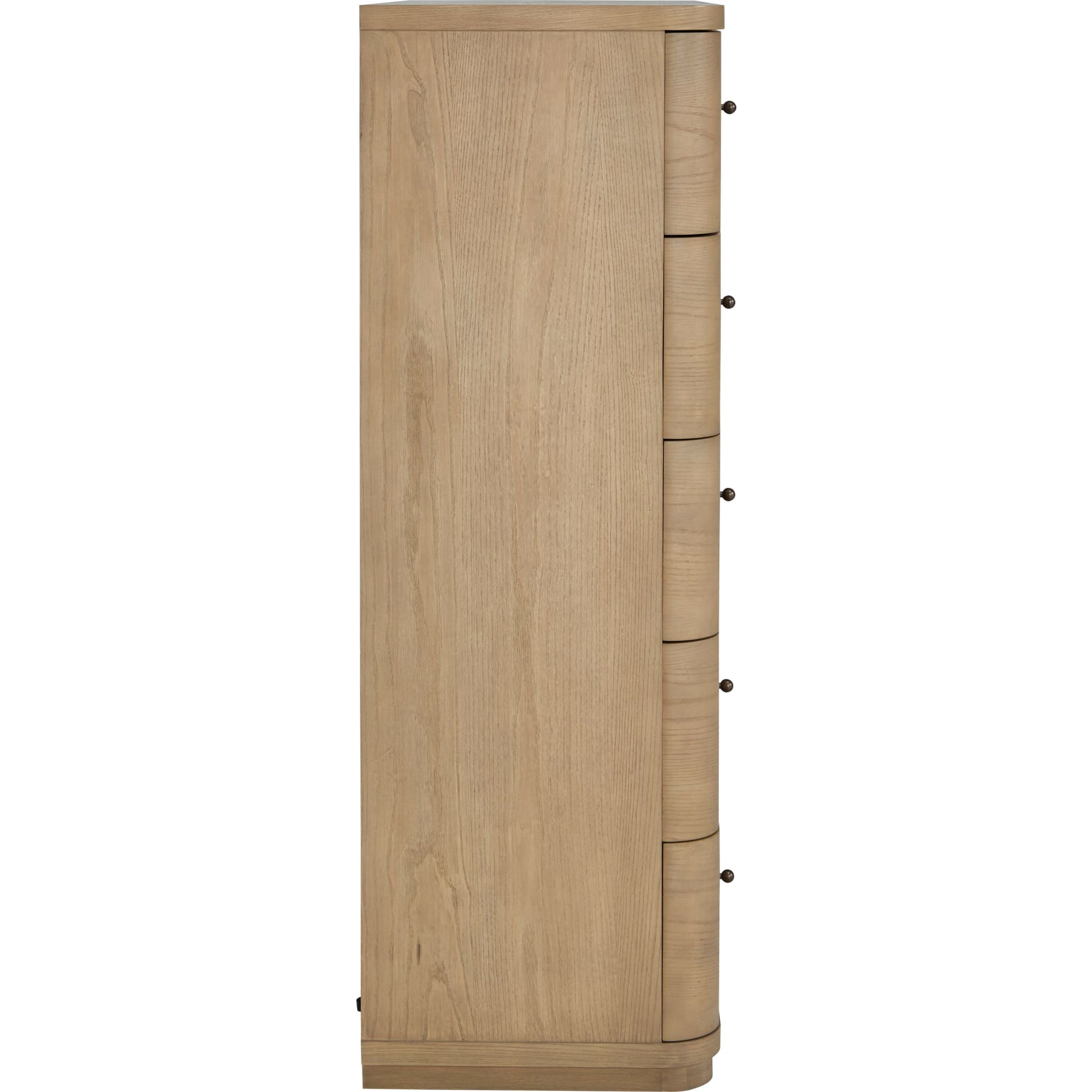 Le curve delicate e l'eleganza sobria della collezione Penny incarnano la filosofia Quiet Luxury, dove ogni dettaglio sussurra raffinatezza. Realizzata in legno di frassino impiallacciato misto, tagliato a quarti e a taglio piatto, le sue tonalità naturali tenui e le venature delicate incarnano una bellezza sobria. Una lussuosa testiera curva in lino e pomelli sferici in ottone brunito offrono un elegante contrasto che si fonde perfettamente con l'estetica minimalista e decisa.