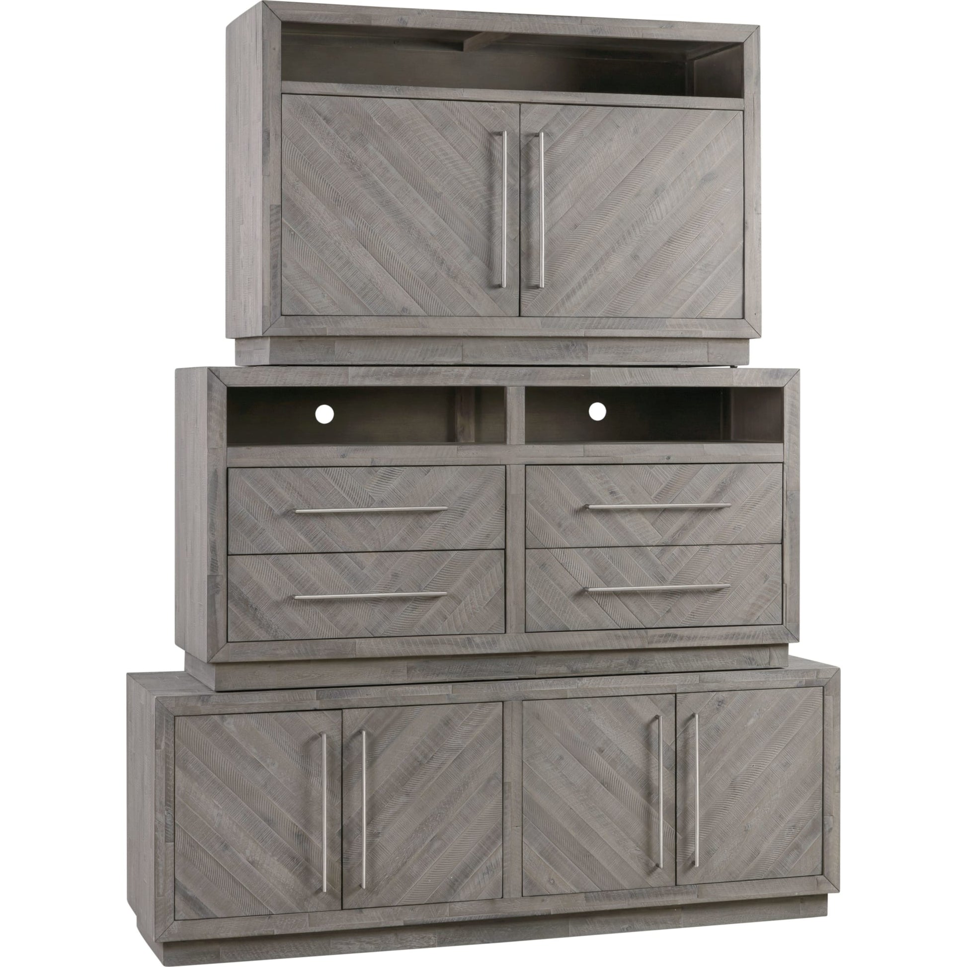 Rustico e contemporaneo. Il fascino della collezione Alexandra deriva dall'acacia grezza utilizzata per la sua creazione. Le assi di legno massello, selezionate a mano, vengono accuratamente levigate, tinteggiate e imbiancate per ottenere un effetto legno di deriva che ne accentua le venature attive e fa risaltare nodi e segni naturali derivanti dal processo di fresatura. Vengono poi intarsiate su compensato per creare un elegante motivo a spina di pesce e rifinite con sottili maniglie in metallo per un tocco contemporaneo finale.