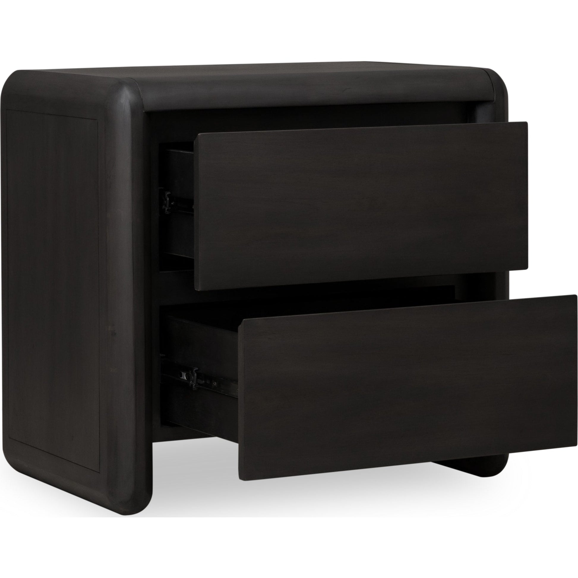 Comodino Xolani in legno di acacia a due cassetti in Jaguar
